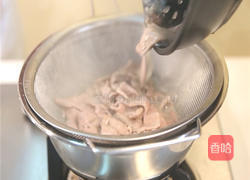 8.锅内水烧开,放入腌制的猪肝,待猪肝发白,捞出沥水备用。