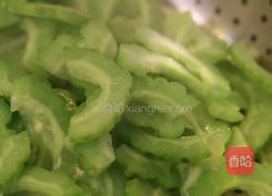5.锅中放清水烧开,将苦瓜焯一下捞出备用。