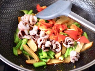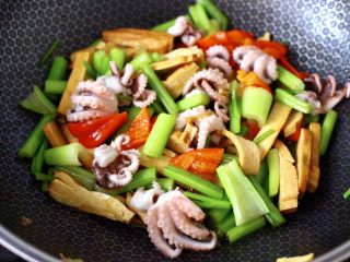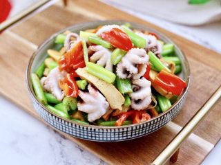 家人和我都喜欢吃海鲜和蔬菜,今天做了香辣八爪鱼小炒,加了芹菜和香干,营养更丰富美味,而且多吃也不会长肉肉上火哟……