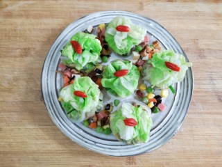 仅仅听这道菜的名字,就已经充满了美好的寓意。百财福袋白菜寓意百財,做成福袋造型,八宝包含八样蔬菜,而且八种食材的搭配也是相当讲究,不仅考虑到颜色视觉上的感受,食材间的营养成分也是相互搭配互补,更加营养美味。过年时,最适合做这道菜,让这个白菜做的小福袋,把这一年的福都收集起来吧。