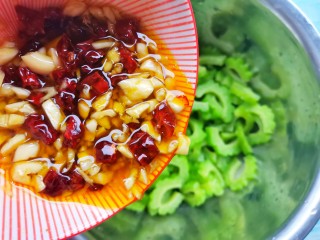 腌好的苦瓜挤出苦水,