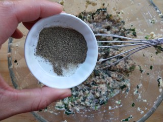 放入,直接用手捏碎与菠菜搅拌均匀。