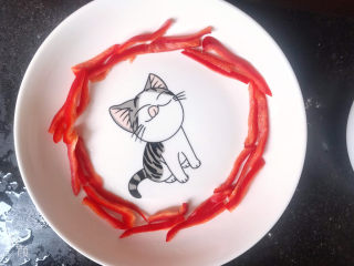 红椒丝摆入盘中