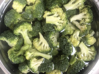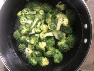 下入西兰花焯水1分钟捞出沥干水份