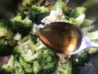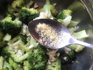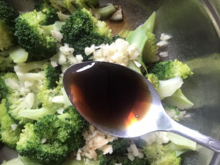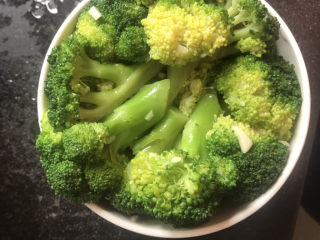 西兰花凉后,加入切好的蒜末,加入适量盐