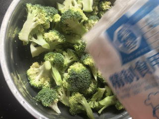 加入没过西兰花的水,搅拌一下,盐水浸泡10分钟,去除农药残留