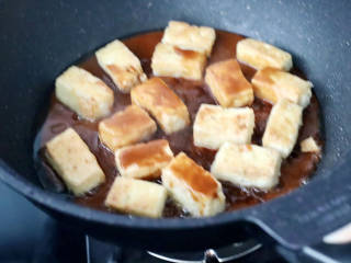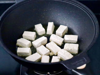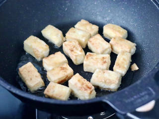 锅里倒入少许油,放入豆腐小火慢慢煎至。