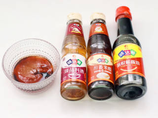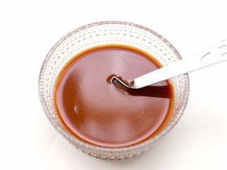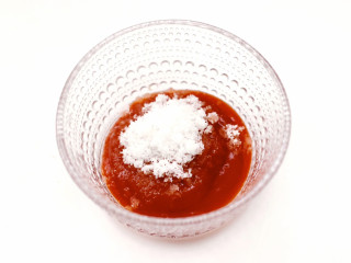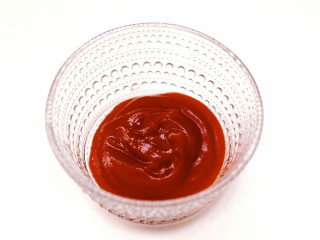 现在先来调制糖醋酱汁,碗里倒入番茄酱。
