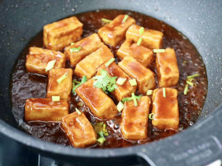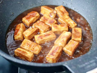大火烧开后,让每块豆腐都裹上糖醋酱汁。