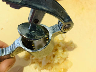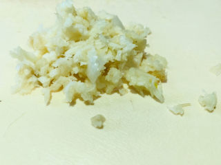 蒸锅烧水的时候,就可以炒蒜蓉了,锅里加两勺油,大火热油,加小火慢炒蒜蓉;