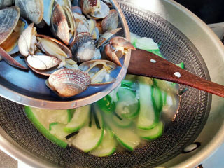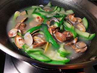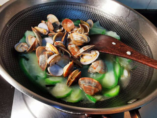 一会儿,丝瓜与花蛤还会涨水出来啦
