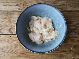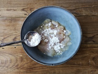 在鱼片中加一点,一点盐和一点抓拌均匀腌制15分钟(时间允许的话可以多腌制一会)。