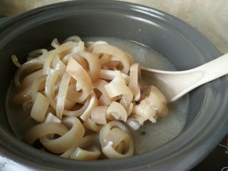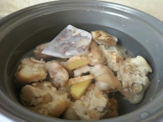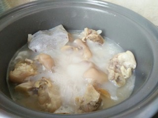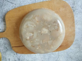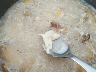 在锅里自然放凉至如图中凝固,油脂会自然浮在上面,用小勺子把油脂刮掉