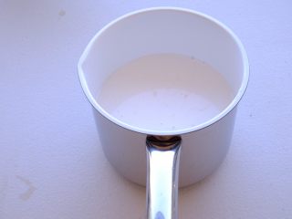 将除了果酱外的所有材料倒进小奶锅 此时因为罐中的油会有结块 这是正常情况 不用着急搅拌