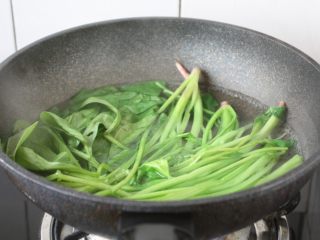 菠菜焯水,焯水后过凉水。 焯水时间要短。