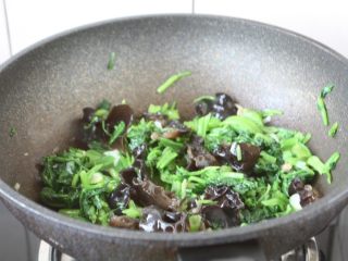 将木耳放在开水里煮1分钟,然后捞出过凉水,沥干水分备用,