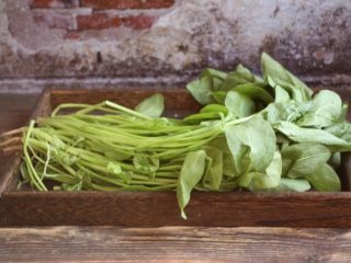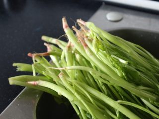 菠菜沥一沥水分。 菠菜的红色的根很有营养,不要摘下去,应该和菠菜一起食用。