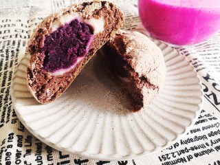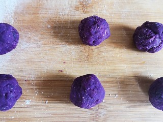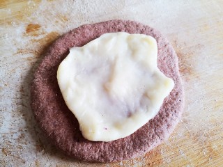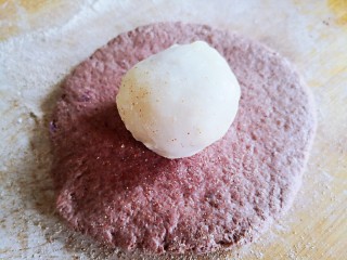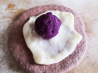 也可以先用麻薯把紫薯球包好,在放在面饼上。包成球球或者喜欢的形状。