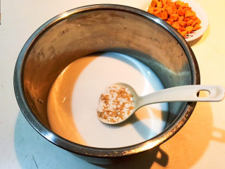 这道粥是用纯牛奶煮的,加入2盒牛奶(500ml)