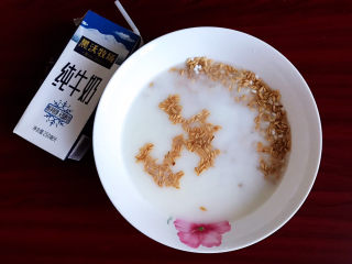 把纯牛奶倒入淘洗干净的米里,浸泡30分钟