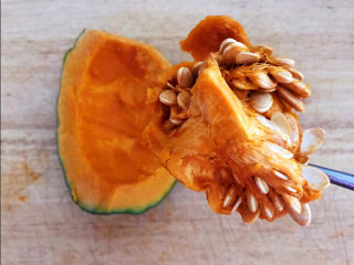 把南瓜切开去除里面的瓜子
