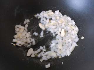 放入洋葱和蒜片炒至变色
