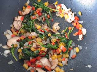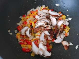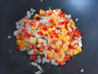 放入彩椒丁翻炒片刻