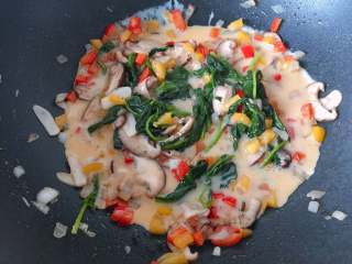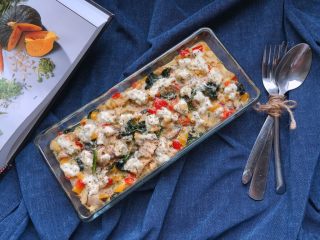 家有挑嘴的健身党,早餐要吃饱吃好,还得营养全面,时刻鞭策着阿妹不断学习。 这款杂蔬奶酪烘蛋源自北非蛋,用菠菜和鲜菇替换了番茄,将鸡蛋打散,而普罗旺斯香草和塔塔香草干酪的加入则让口味变得浓郁,口感大大提升。 优质蛋白和缤纷蔬菜的结合,简单营养又美味。非常适合健身党哦~
