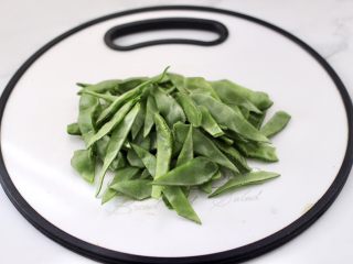 两边去掉丝后洗净,每个眉豆用刀斜切两半