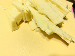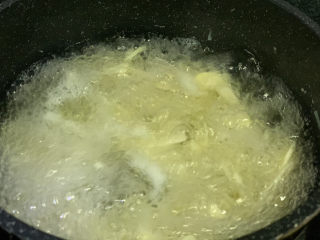 再起一锅水,加点盐,把春笋放进锅内,灼水,去涩味;