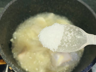 大概半小时左右,汤汁呈乳白色,加少许盐,提味;