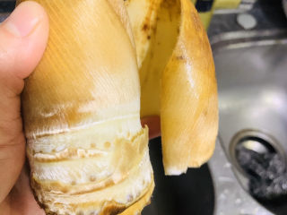 把春笋比较老的外皮削去,太老很硬不能吃;