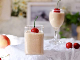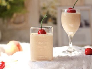 颜值担当的水蜜桃车厘子奶昔就做好了,放到冰箱冷藏一下,口感会更好。