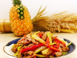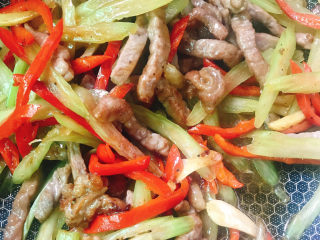 放入红尖椒和西芹