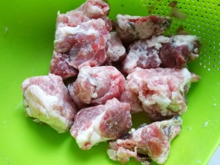 排骨放入锅中,加三片姜,加冷水焯去血水,以净水洗净沥干备用。