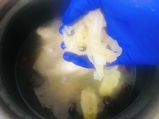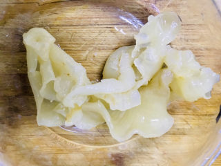 - 花胶泡发:清水浸泡一夜,上锅加姜片蒸30分钟,然后放凉清水浸泡24小时,每8小时换一次水,嫌麻烦就12小时换一次水。