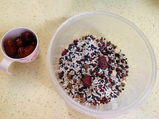 把谷米材料清水洗净,清水泡一小时,也可以隔夜泡一下,第二天早上煮,这样容易快煮熟。
