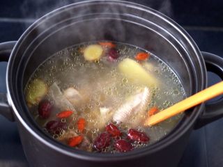 大火煮沸后继续中小火慢慢炖煮1个小时。