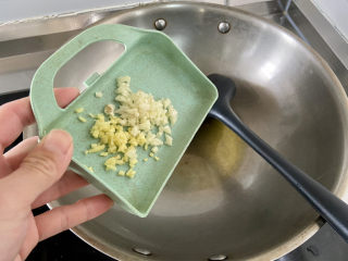 留底油,加入姜蒜末,小火煸香