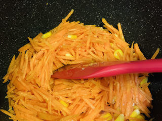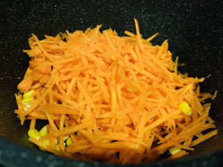 锅加食用油,中火热锅,加入胡萝卜,
