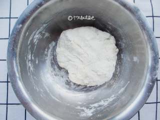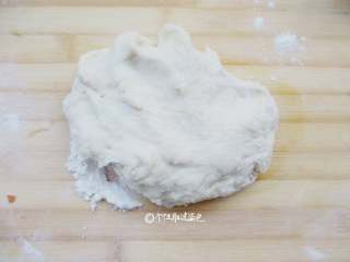 用筷子搅成絮状,由于面粉吸水性不同,温水不要一次倒入,先倒入大半看情况再增减。揉成很软的面团,不用揉成很光滑,因为面团特别软,盖上保鲜膜发酵40分钟