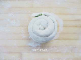 从面团一边开始往内卷,卷成圆型