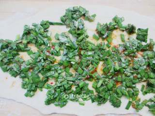 平底锅涂一层油,油温热后转小火放入韭菜饼坯子,煎一会就翻转过来煎另一面,煎的过程要两面不断翻转避免煎焦。煎到两面金黄即可。由于面团是卷的,建议多煎一会让卷在里面的面也熟透。