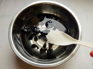 木耳放一勺在清水中泡发。