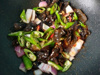 倒入木耳翻炒。