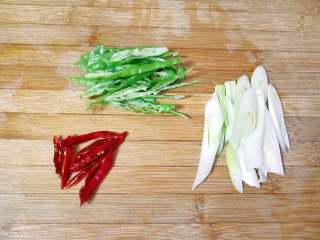 、线辣椒、分别洗干净切成丝。