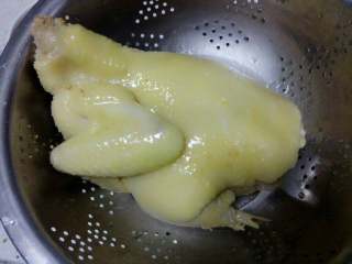 将鸡捞出,放入冷开水中让其迅速降温,这个步骤可以保持鸡肉肉质的鲜嫩。