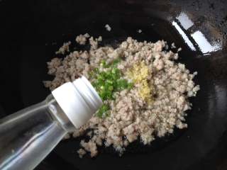 锅中倒入适量油,油热后放肉末小火煸炒