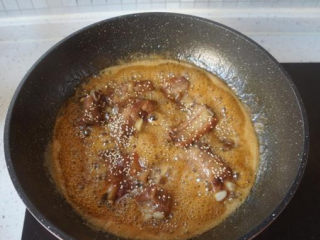 排骨煎好后倒入糖醋汁;