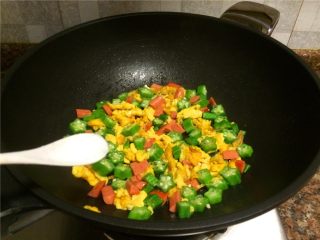 秋葵含有蛋白质、脂肪、碳水化合物及丰富的维他命A和B群、钙、磷、铁等,以及含有锌和硒等微量元素,对增强人体免疫力有一定帮助。秋葵和鸡蛋火腿肠搭配炒食,口味清淡,家常营养。